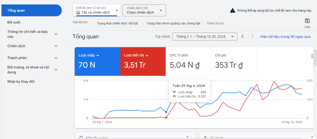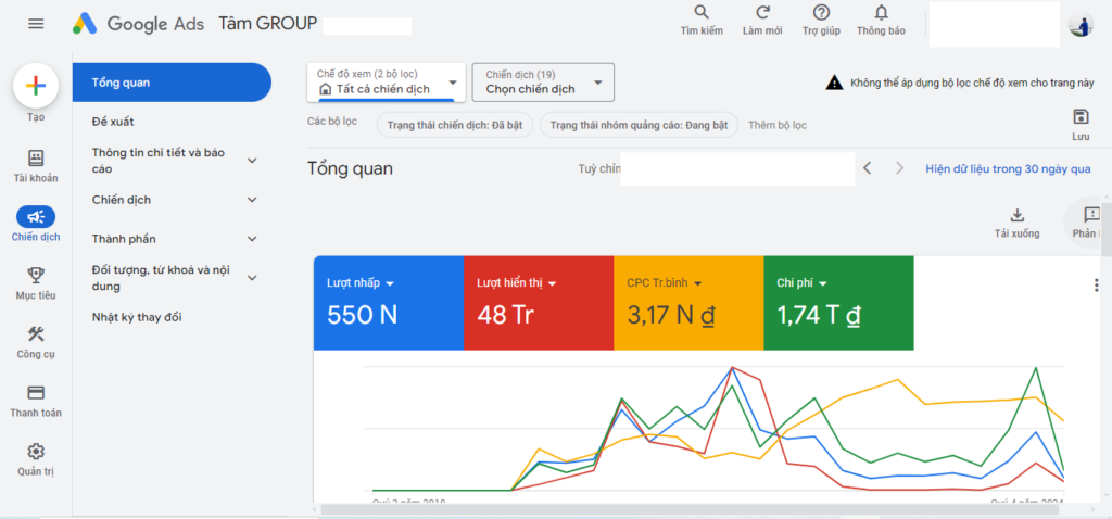 • Từ khóa (nếu đã có), khu vực, thời gian hiển thị quảng cáo.